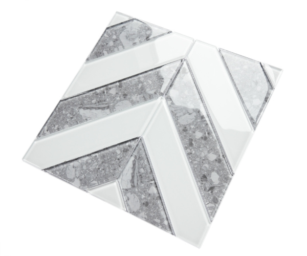 Description of Goods:          Glass mosaic tile chip size:irregular sheet size:298x298mm, thinkness:6mm mesh mounted,15sheets/box